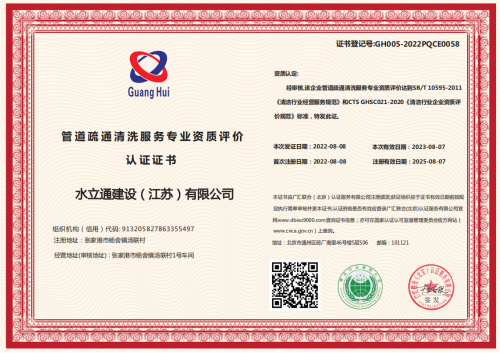 管道疏通清洗服务企业资质证书