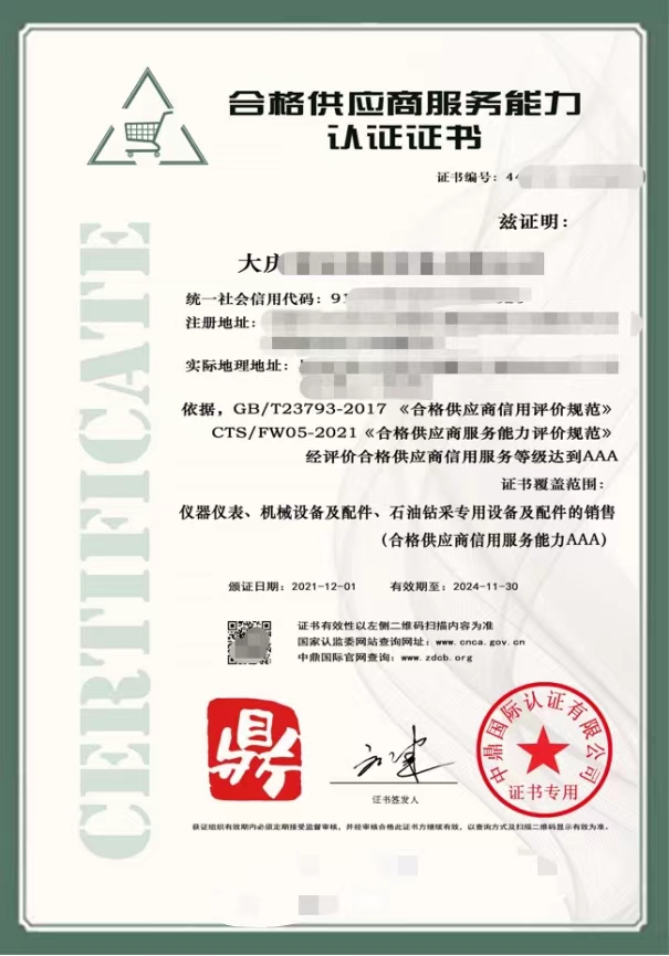 服务资质证书
