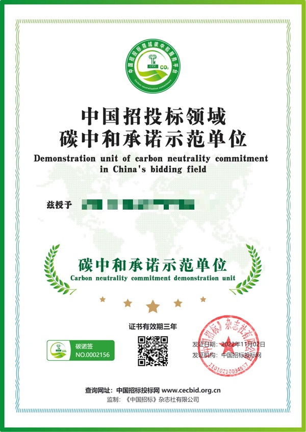 承诺示范单位证书