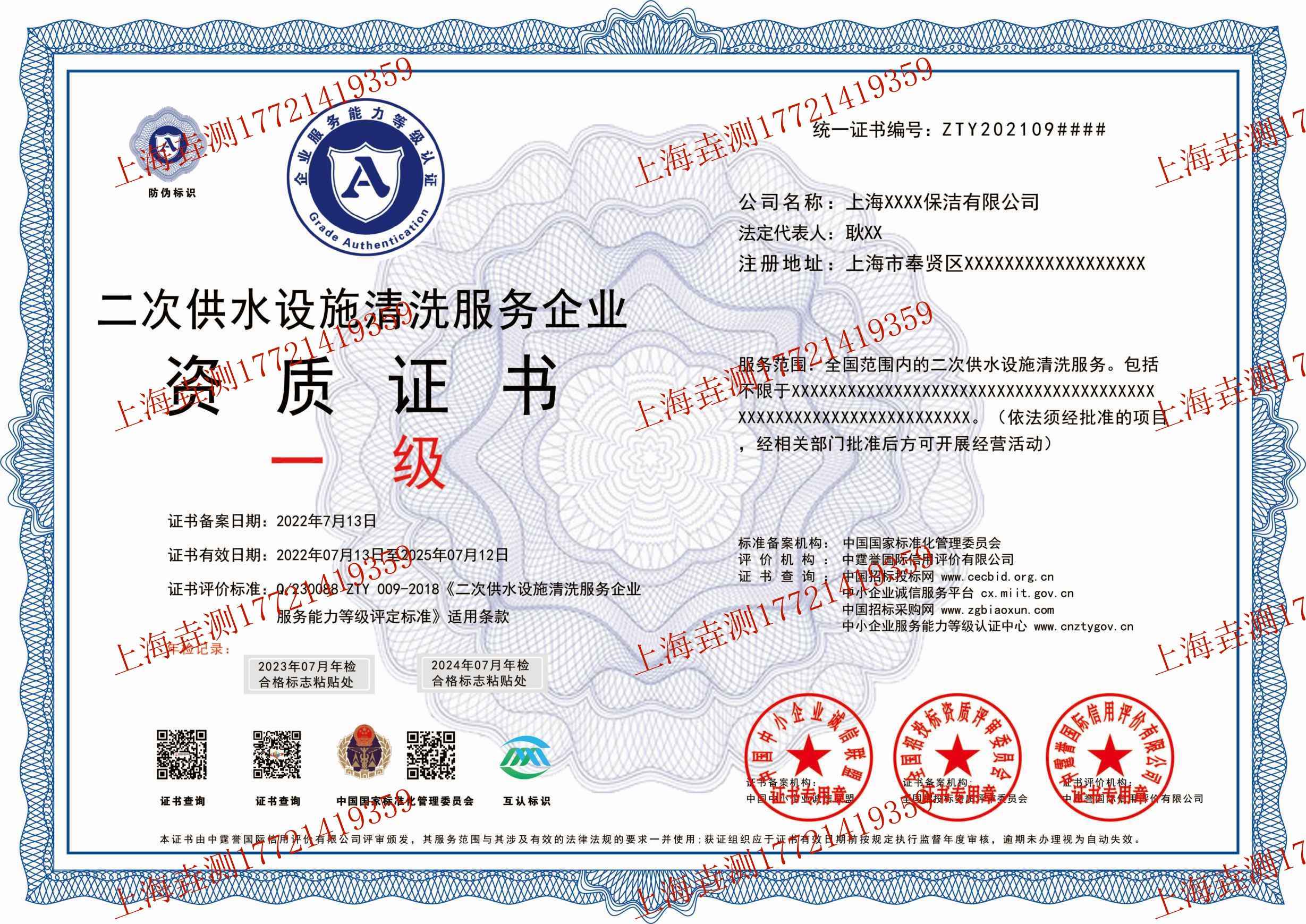 二次供水设施清洗服务企业资质证书  墓碑制作安装服务企业资质证书  环境污染治理设施运营服务企业资质证书  中国设备维修安装运行企业能力等级证书